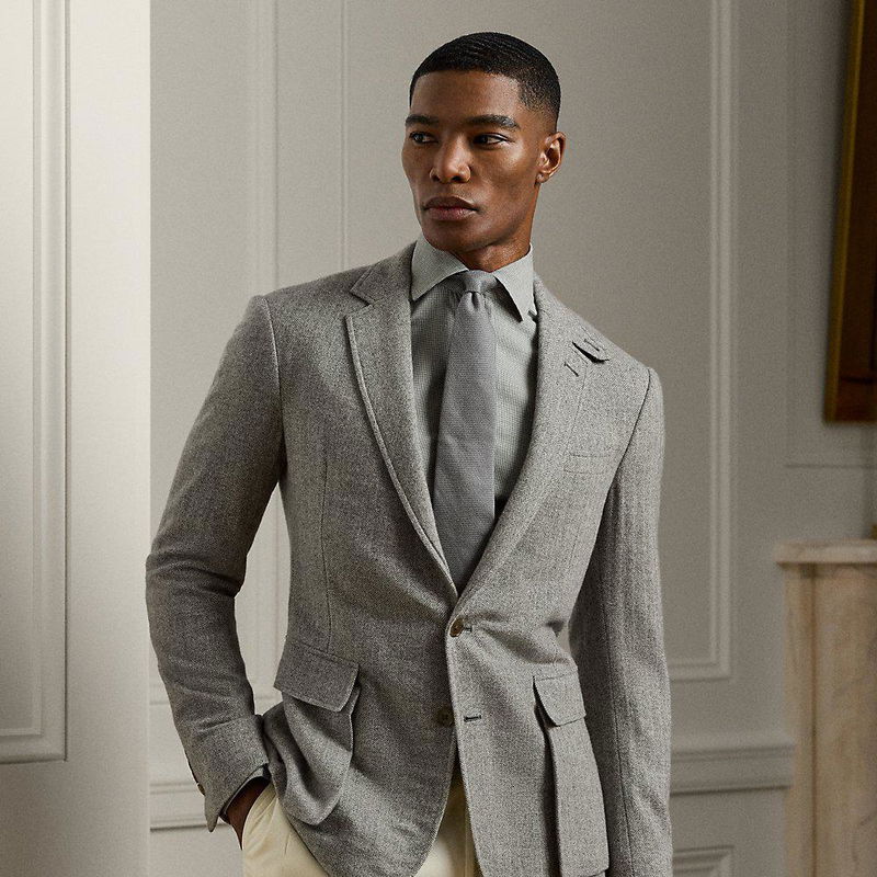 Hand-tailored in Italy, the Kent combines a lighter construction with fine canvassing and a soft shoulder to create a more natural profile. This version's brushed cashmere cloth draws inspiration from a herringbone tweed pattern. Developed with a signature matte finish, the luxurious fabric was custom-developed with England's Joshua Ellis mill and is exclusive to Ralph Lauren.