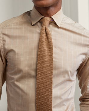 In a luxurious blend of lightweight linen and tussah silk, this shirt's canvas fabric was custom-dyed in the season's navy hue.