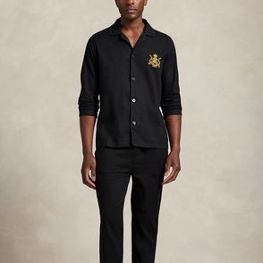 This pyjama set is tailored in Italy using premium cotton. Detailed with genuine mother-of-pearl buttons, it is embroidered with Purple Label's signature Art Deco-inspired monogram on the shirt and the coordinating travel pouch.