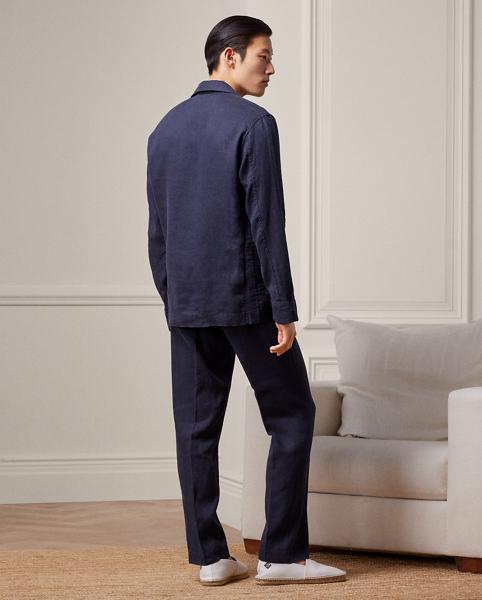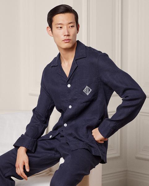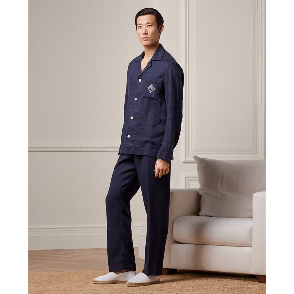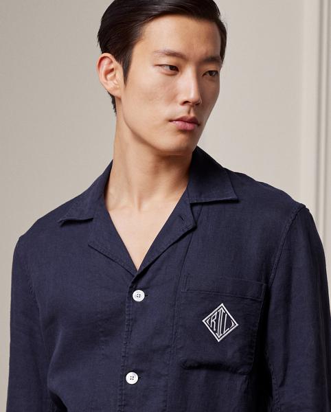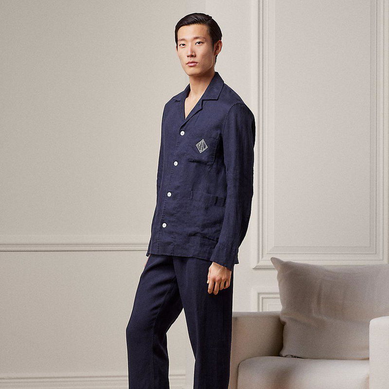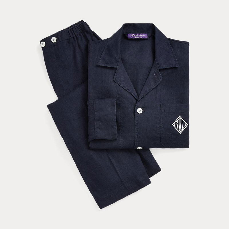 This pajama set is tailored in Italy using premium linen. Detailed with genuine mother-of-pearl buttons, it is embroidered with Purple Label’s signature Art Deco–inspired monogram at the shirt and the coordinating travel pouch.