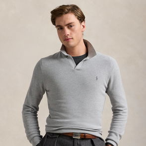 This Italian-crafted jumper combines a silhouette inspired by Ralph Lauren Lauren's iconic Polo shirt with a luxurious blend of silk and lightweight linen. Distinguished by its meticulous rack-stitched construction and finished with genuine mother-of-pearl buttons, it exemplifies Purple Label's philosophy of superior artisanship.