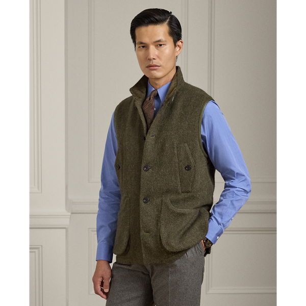 Utilising fabrics from the Purple Label haberdashery collection, this Italian-crafted waistcoat features a wool-and-cashmere herringbone exterior, corduroy facing at the collar and a soft flannel lining.