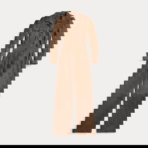 Moto detailing at the bodice including café racer-style stand collar. Jodhpur silhouette at the trouser with lace-up hems. Fully lined.