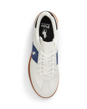 Inspired by a '30s military physical-training trainer. Made from cotton canvas and dyed with true indigo. Vulcanised rubber outsole. Constructed on a custom Double RL last. Available in men's sizes from 5 to 13. We suggest women order two sizes smaller than their usual size. Please see the size chart for a conversion guide.