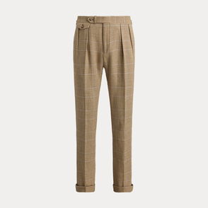 Pleated trousers with a tapered leg. Cotton corduroy was sourced from a storied French mill that has been specialising in this type of fabric since the 1800s. Metal buttons. Adjustable snapped tabs on the cuffs.