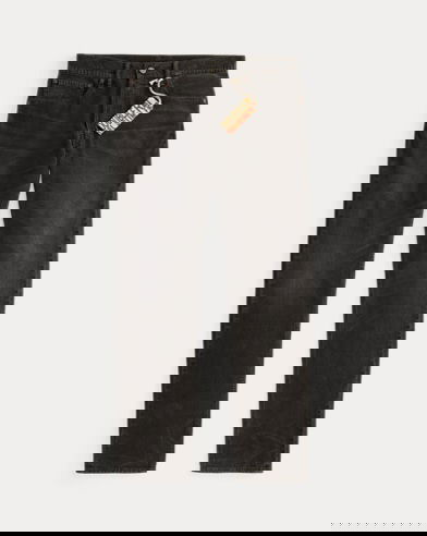 Western-inspired detailing throughout, including decorative stitching at the front pockets. Button fly. Washed down and tinted to achieve a warm black-brown tone and a timeworn look.