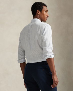 Slim-fitting Western shirt made with washed cotton jacquard. Yarn-dyed with true indigo. Vintage-inspired striped pattern. Woven reinforcements on the interior.
