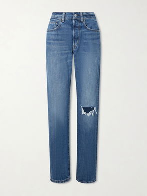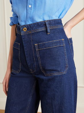 Skinny-fitting cargo pants made with 10 oz. Japanese stretch denim. Cargo pockets on the thighs and knees. Articulated knees for ease of movement. Zip cuffs.