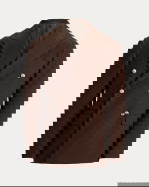 Made with Japanese cotton herringbone that is yarn-dyed with indigo. Half-lined. Corozo buttons.
