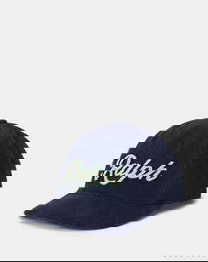 Made with indigo-dyed cotton denim. Flight-inspired logo patch at the front. Signature green underbrim. Adjustable back strap.