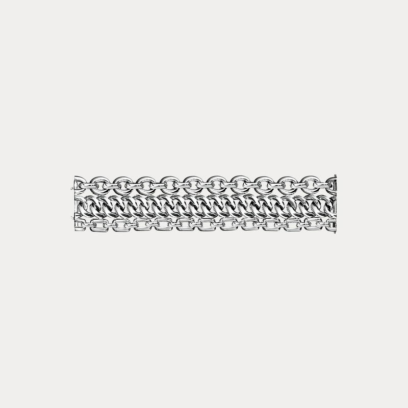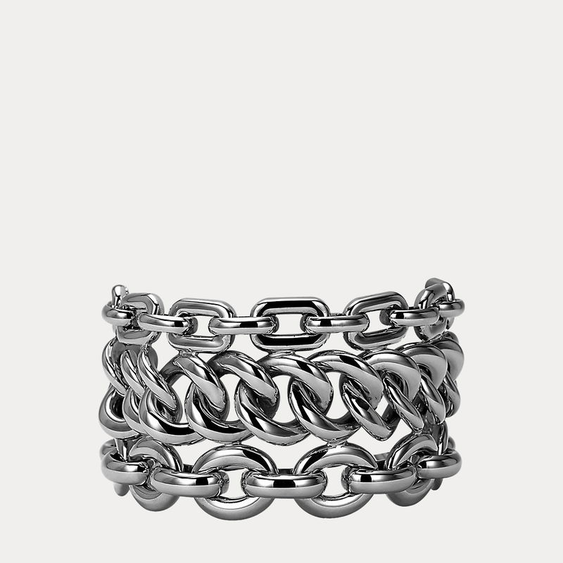 Part of the Chunky Chain collection, which beautifully captures Ralph Lauren Lauren's iconic expression of melding modernity and timeless style, this rhodium-plated sterling silver three-chain bracelet creates a masterful juxtaposition between chains and links. Handcrafted in a region of Italy revered for its silversmithing techniques, this piece is completed with a polished finish.