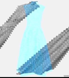 Every style from Rebecca Vallance is characterized by glitz and glamour. Detailed with shimmering florals, the Afina gown is crafted from luxurious brocade fabric with a cinching belted waist, shirting-style silhouette, and lightly puffed sleeves.