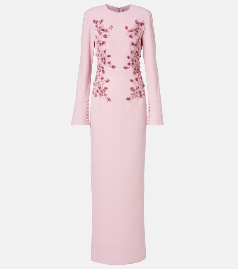Every style from Rebecca Vallance is characterized by glitz and glamour. The Lulee gown is tailored to a column silhouette with a deep slit at the back, and its floral embroidery is adorned with subtle crystals.