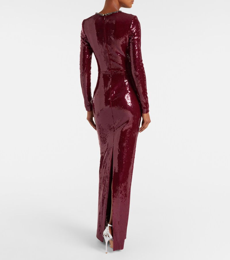 Every style from Rebecca Vallance is characterized by glitz and glamour. The Nero gown is a striking design with its all-over sequins, crystal-embellished crewneck, and deep back slit.