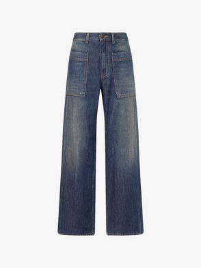Straight-leg non-stretch cotton denim jeans. Graphic pattern embroidered throughout. · High-rise· Belt loops· Five-pocket styling· Button-fly· Logo-engraved silver-tone hardware.