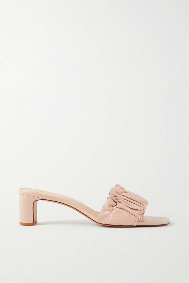 Reformation's 'Shereen' mules are an effortless, comfortable way to elevate your look. Made from ruched leather, they have angular square toes and 50mm block heels that make them manageable to wear for long periods of time.