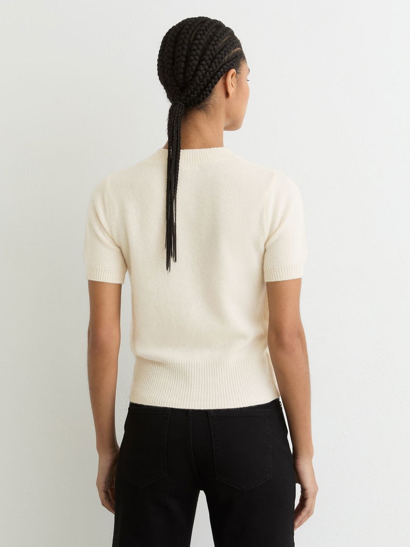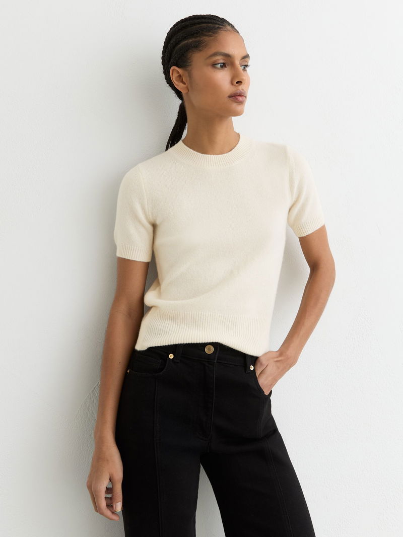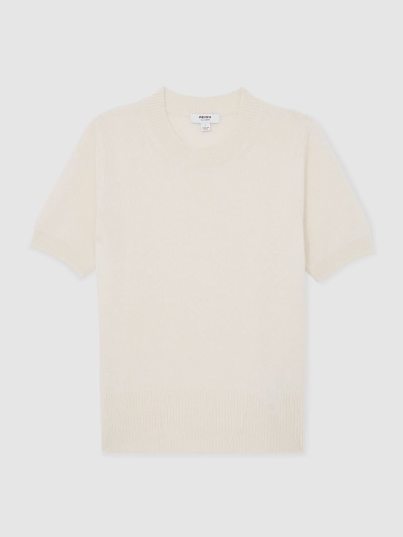 100% Cashmere Crew Neck T-Shirt In Ivory