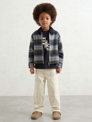 13-14 Yrs Button-Through Check Overshirt With Wool In Navy/Blue/Brown