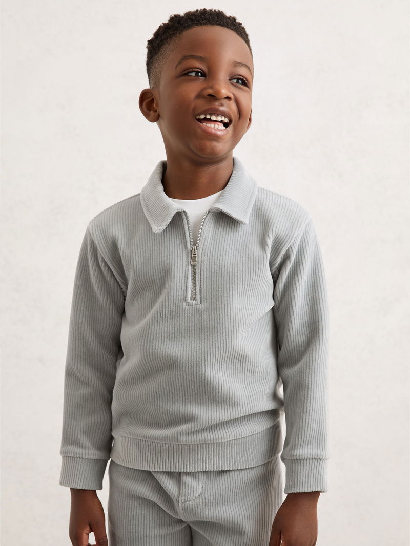 13-14 Yrs Corduroy Half-Zip Polo Shirt In Soft Grey