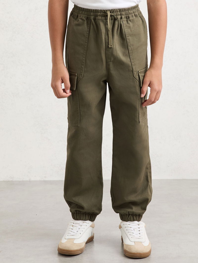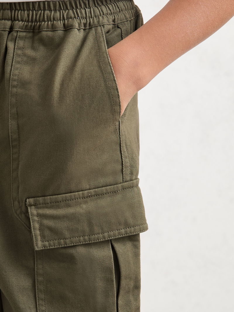 13-14 Yrs Cotton Cuffed Cargo Trousers In Khaki