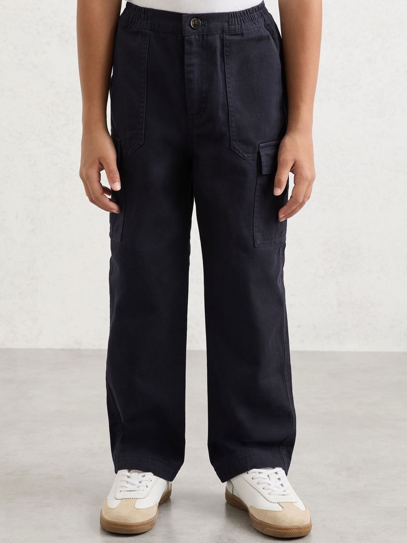 13-14 Yrs Cotton Wide-Leg Cargo Trousers In Navy