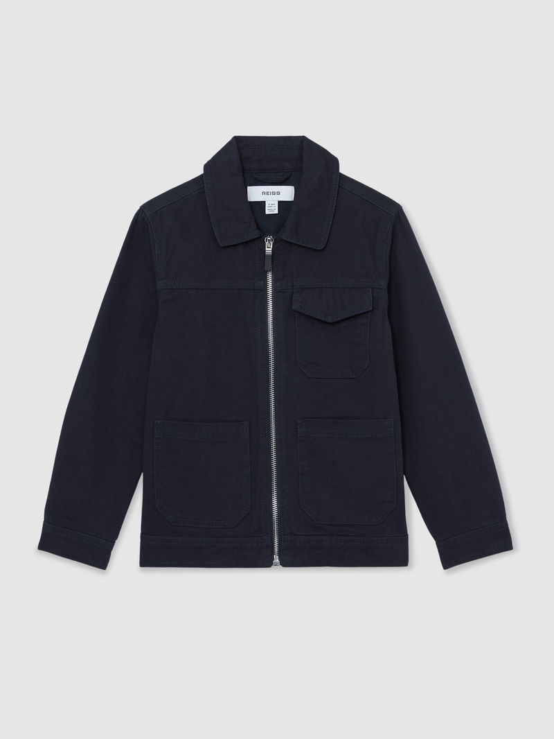 13-14 Yrs Cotton Zip-Through Utility Jacket In Navy