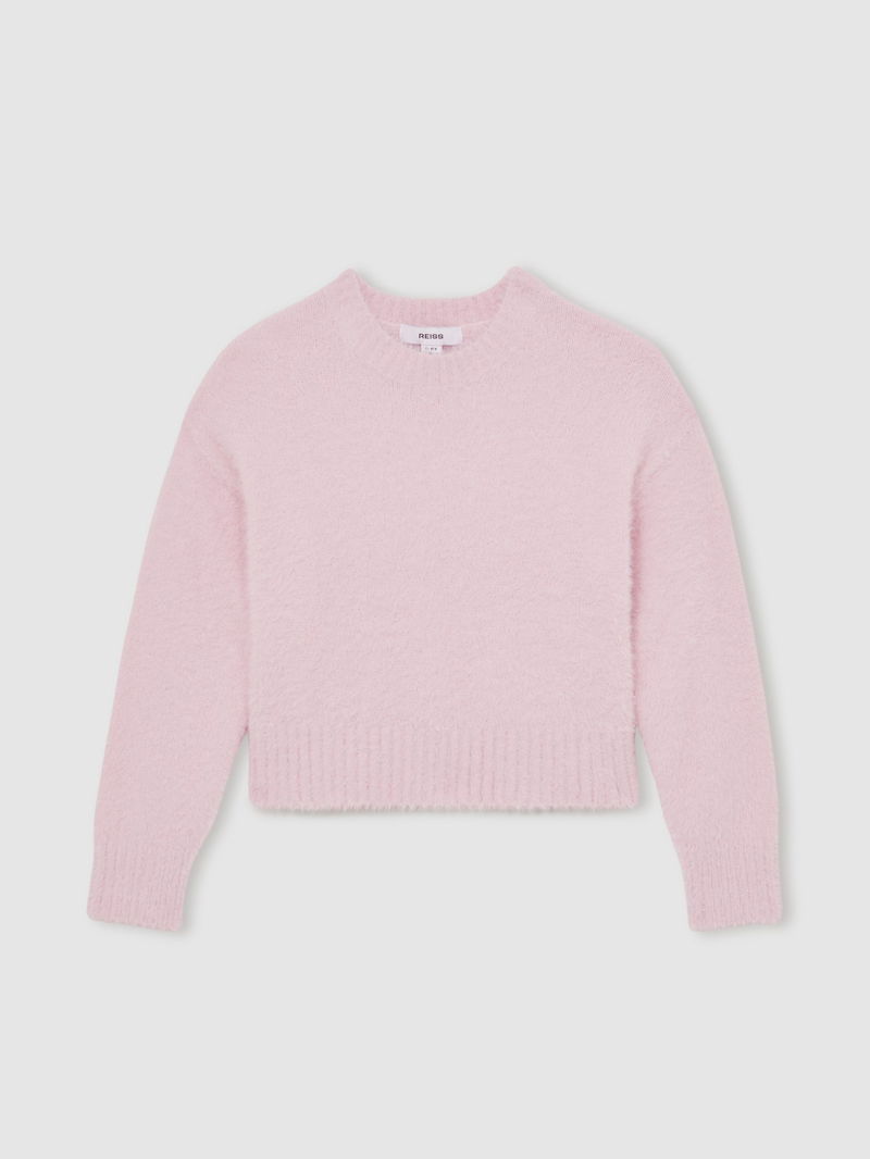 13-14 Yrs Fluffy Crew-Neck Jumper In Pink