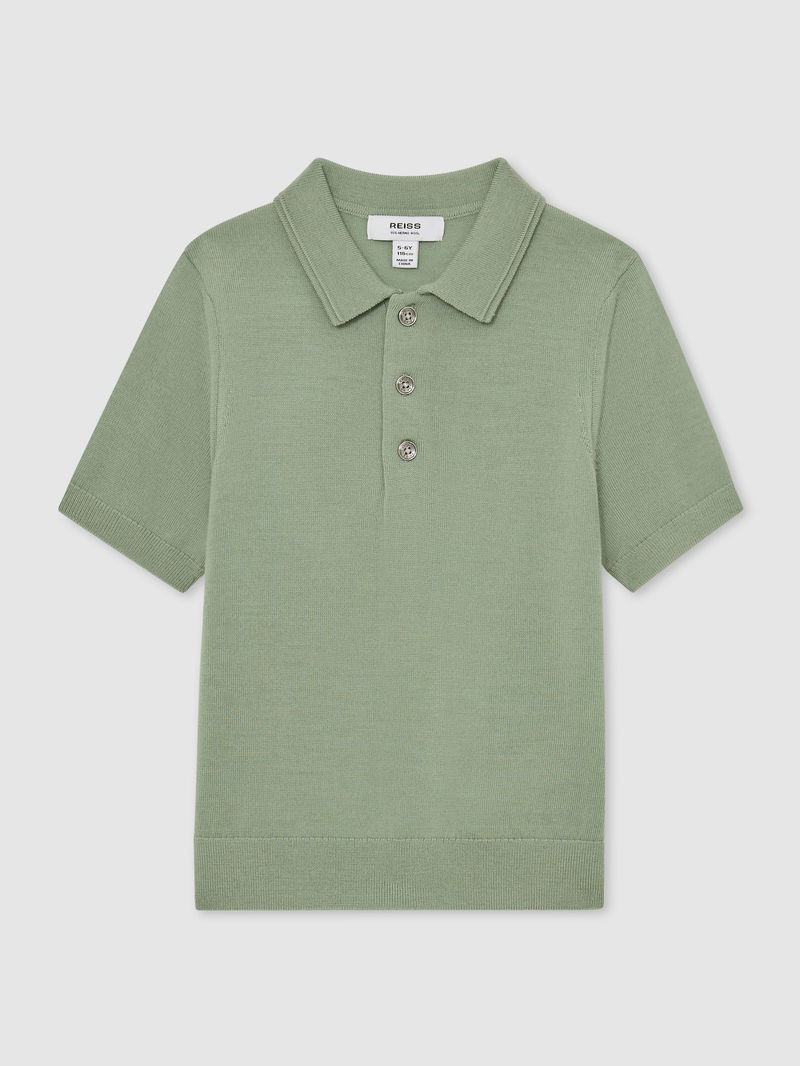 13-14 Yrs Merino Wool Short-Sleeve Polo Shirt In Light Sage Green