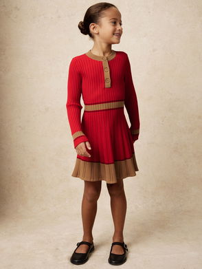 13-14 Yrs Piped Knitted Skater Dress In Pink