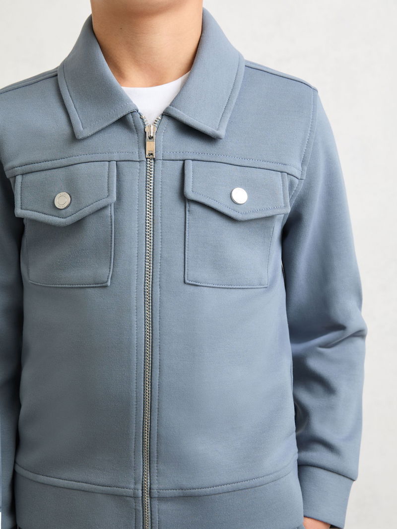 13-14 Yrs Premium Interlock Zip-Through Overshirt In Airforce Blue