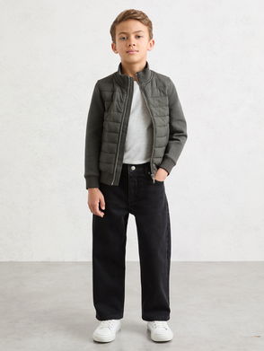 13-14 Yrs Quilted Hybrid Zip-Front Jacket In Sage Green