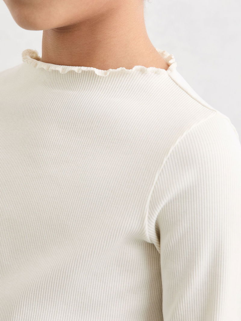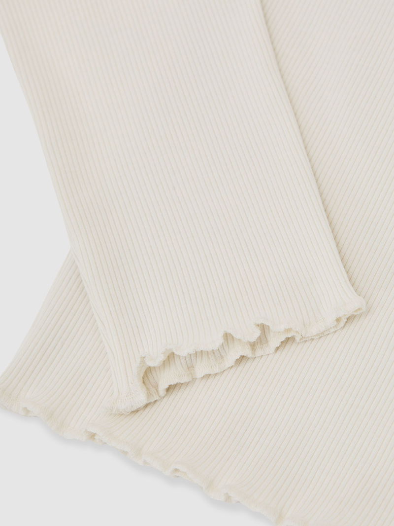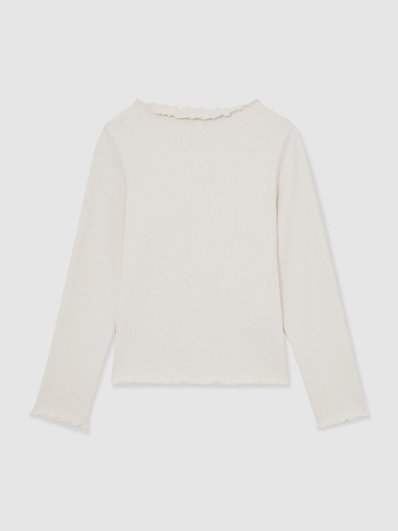 13-14 Yrs Stretch-Cotton Lettuce-Trim Ribbed Top In Ecru