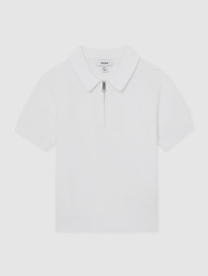 13-14 Yrs Textured-Knit Half-Zip Polo Shirt In Ice Blue