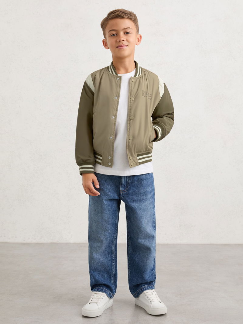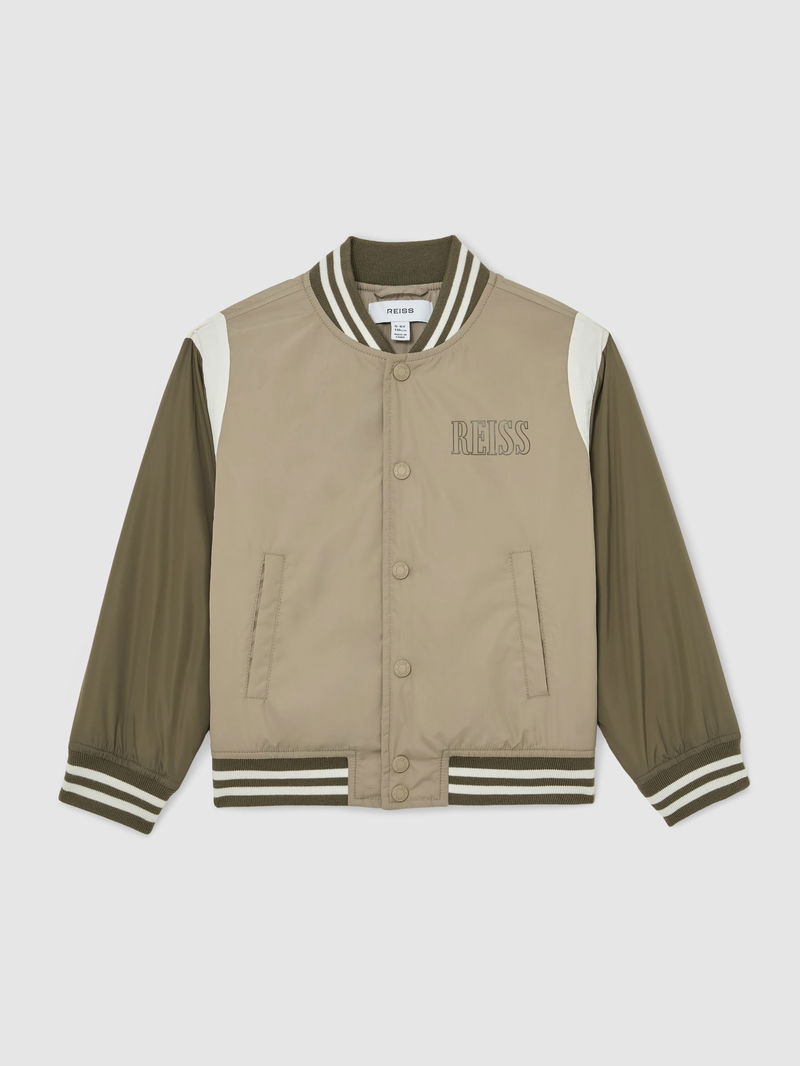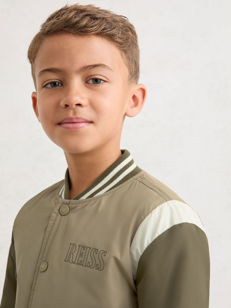 3-9 Yrs Colour-Block Bomber Jacket In Green