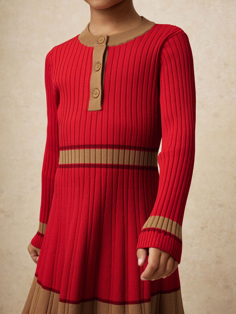 3-9 Yrs Colour-Block Knitted Skater Dress In Red