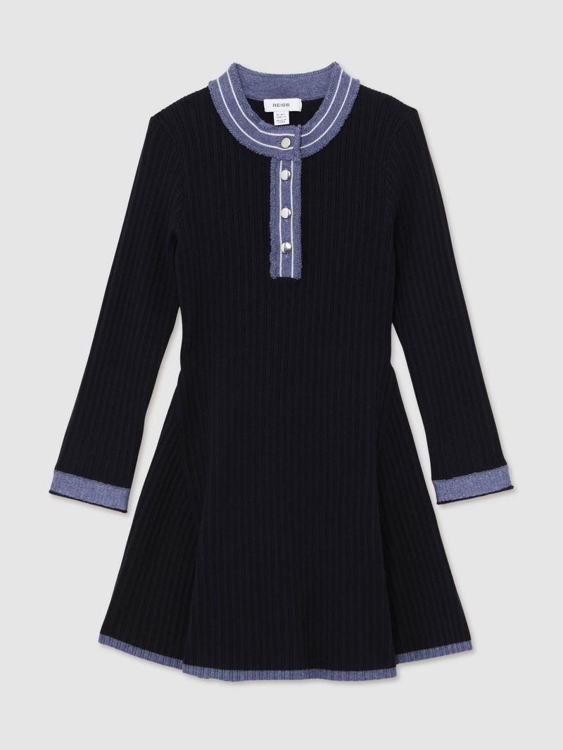 3-9 Yrs Contrast-Trim Rib-Knit Skater Dress In Navy