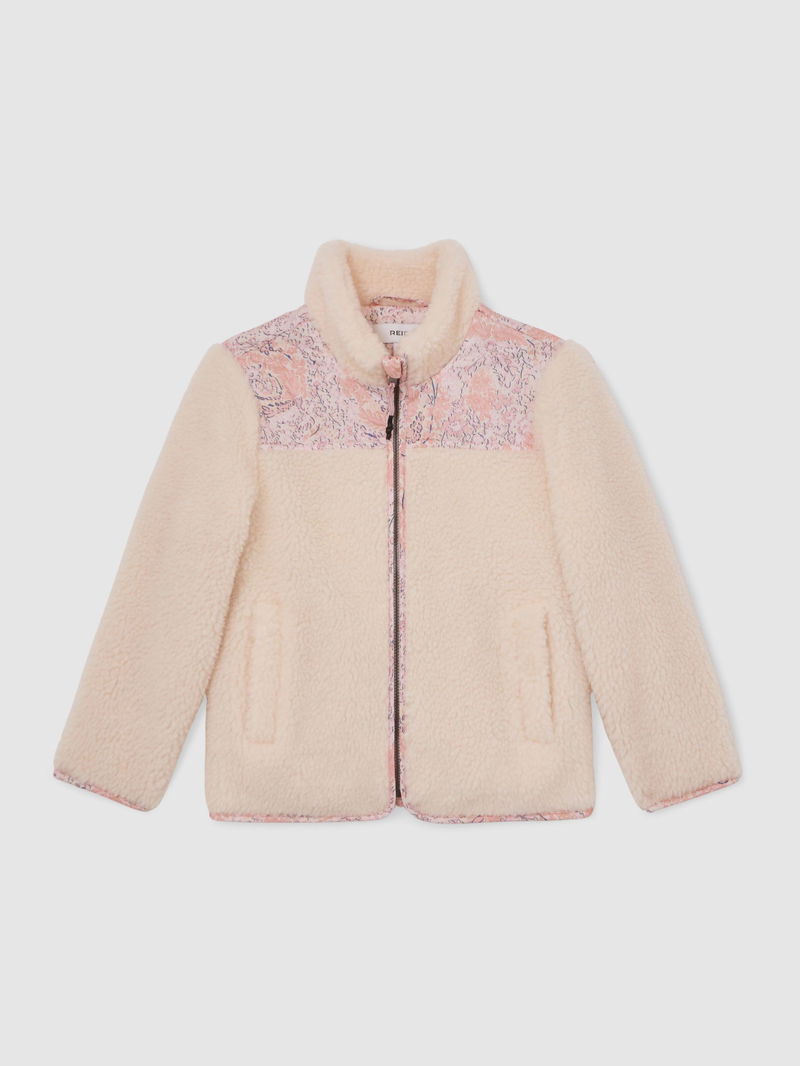 3-9 Yrs Floral-Panel Fleece Jacket In Ivory