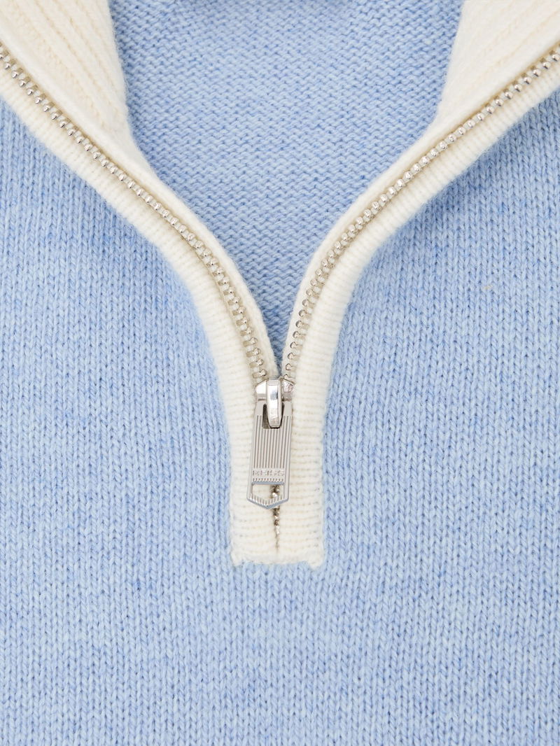 3-9 Yrs Half-Zip Contrast Knitted Jumper With Wool In Mist Blue
