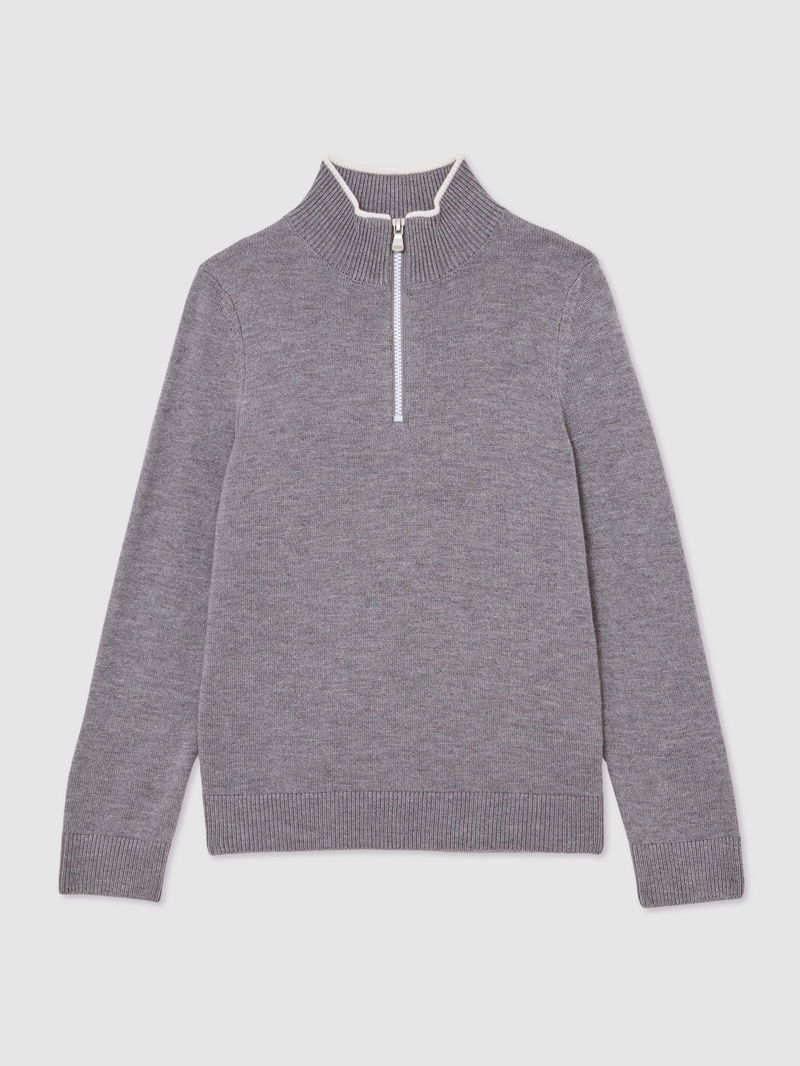 3-9 Yrs Half-Zip Funnel-Neck Jumper With Wool In Grey/White