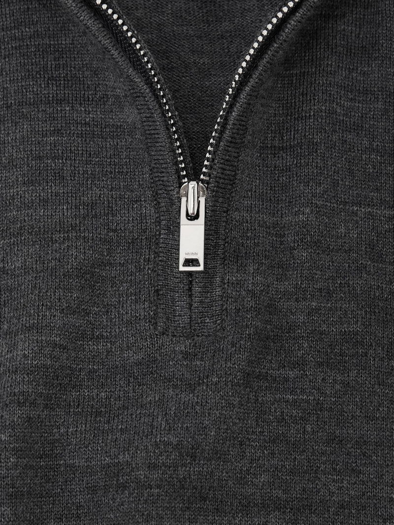 3-9 Yrs Merino Wool Half-Zip Funnel Neck Jumper In Derby Grey Melange