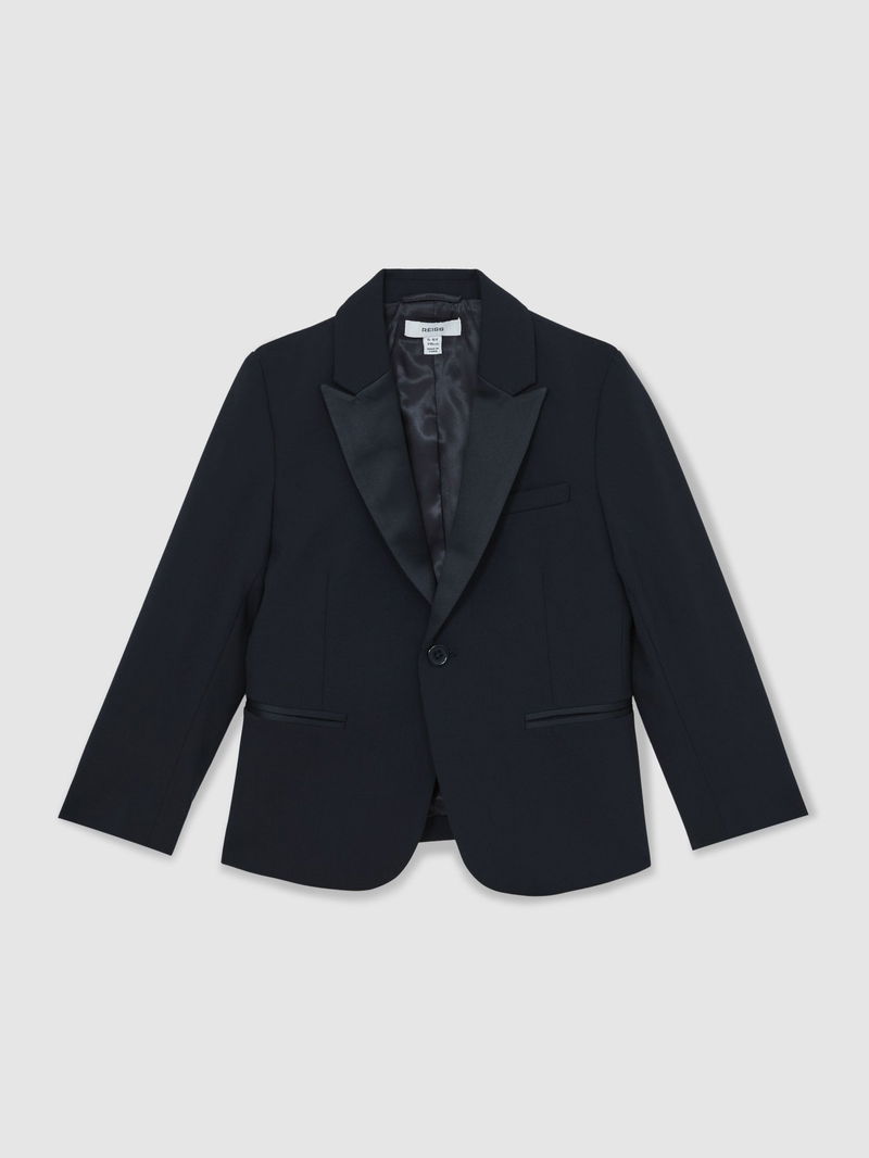 3-9 Yrs Single-Breasted Tuxedo Blazer Wool-Blend In Navy