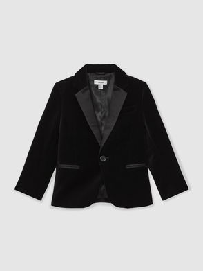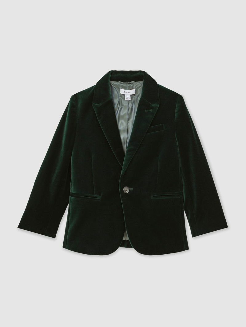 3-9 Yrs Single-Breasted Velvet Blazer In Green