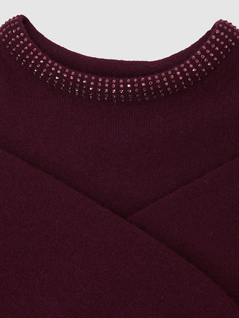 3-9 Yrs Wool-Blend Crystal-Neckline Jumper With Cashmere In Berry