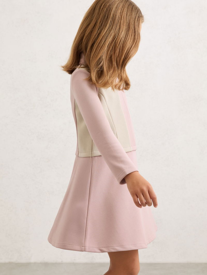 9-13 Yrs Colour-Block Interlock Dress In Neutral