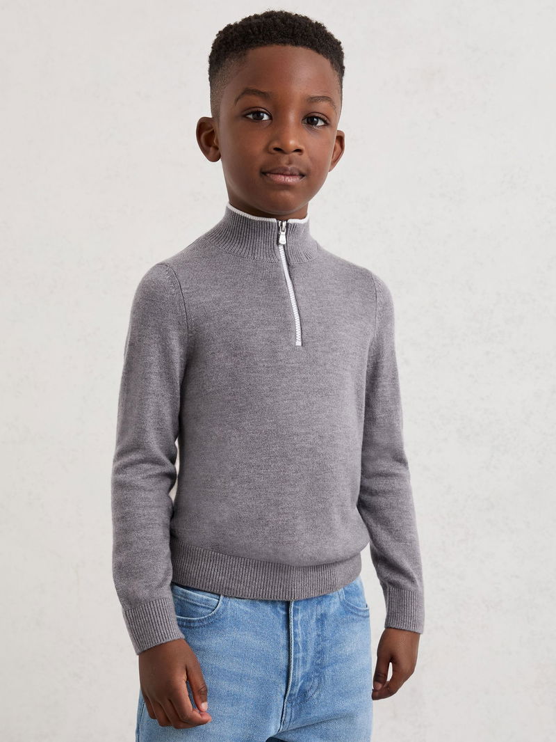 9-13 Yrs Half-Zip Funnel-Neck Jumper With Wool In Grey/White
