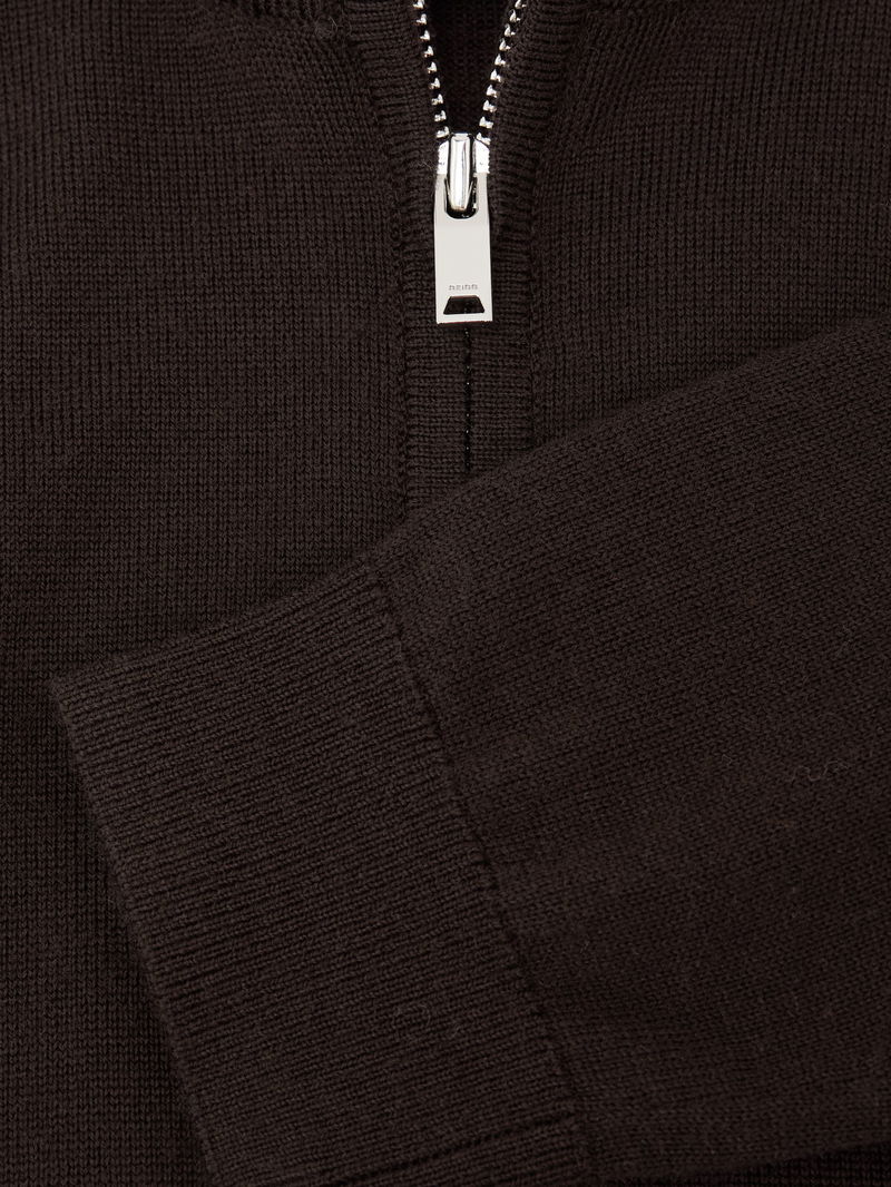 9-13 Yrs Merino Wool Half-Zip Funnel Neck Jumper In Chocolate Brown