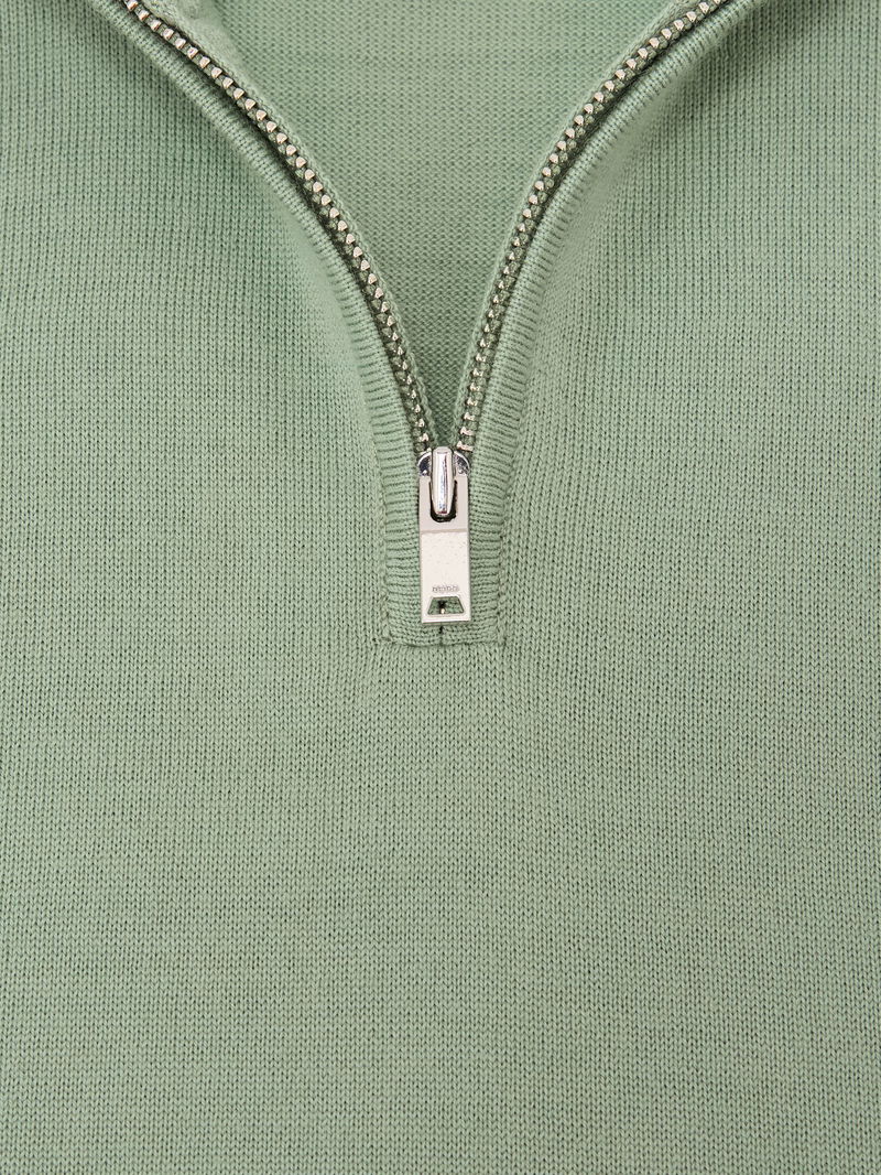 9-13 Yrs Merino Wool Half-Zip Funnel Neck Jumper In Light Sage Green