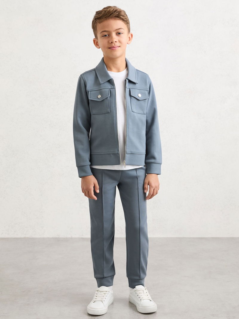 9-13 Yrs Premium Interlock Zip-Through Overshirt In Airforce Blue