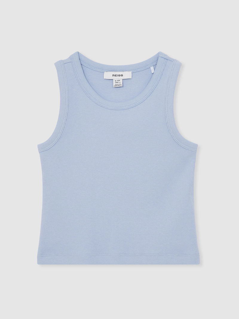 9-13 Yrs Stretch-Cotton Ribbed Vest In Blue
