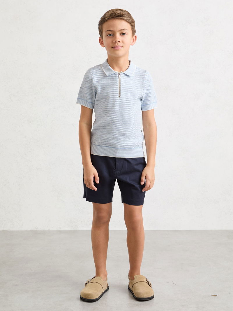 9-13 Yrs Textured-Knit Half-Zip Polo Shirt In Ice Blue